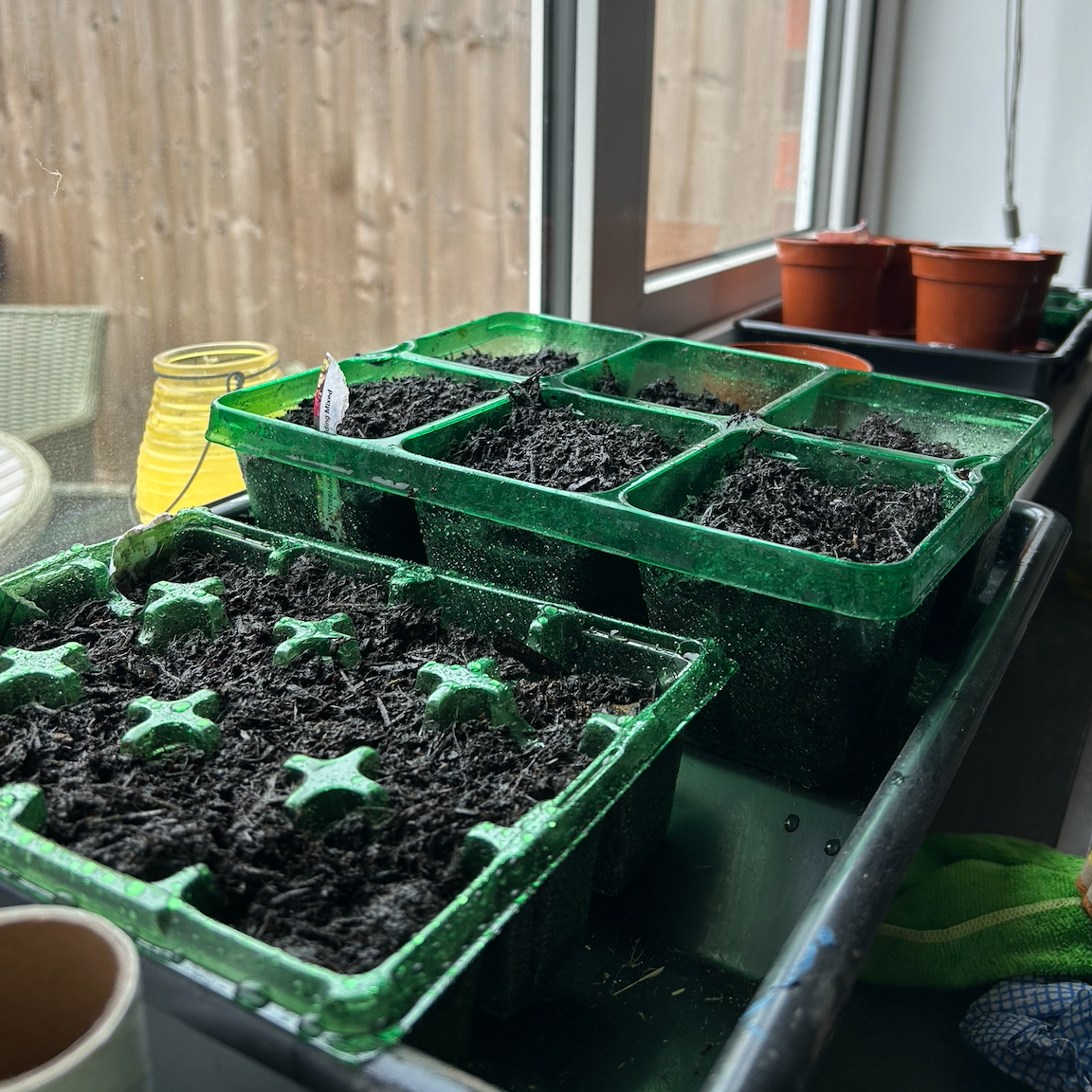 I set up on the patio with all my seeds, soil, and propagation pots and worked my way through everything one by one. There’s something quite satisfying about this part, just getting everything organised and started.